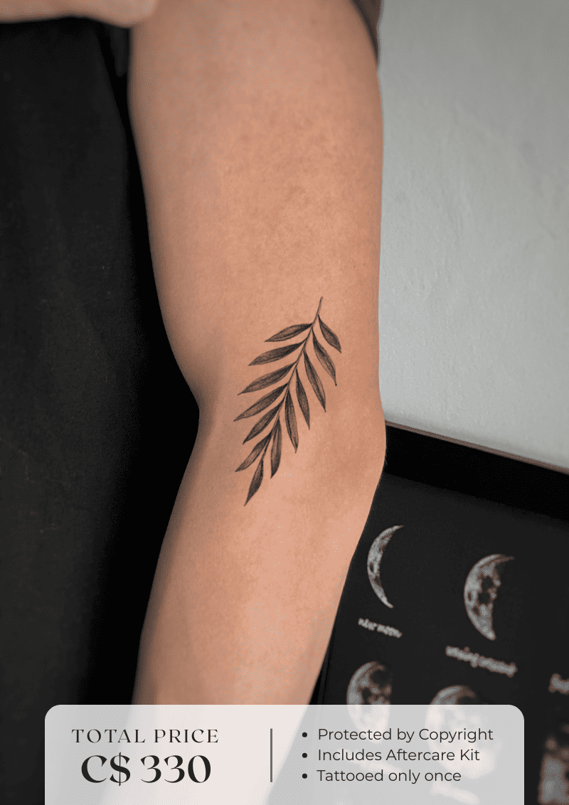 This fine line flash captures the graceful elegance of a botanical leaf, rendered in a minimalist yet expressive style. Its delicate curve and natural flow evoke a sense of serenity, growth, and connection to the earth.